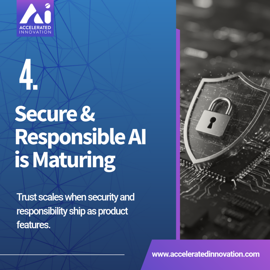 On Responsible AI, the basics are getting operationalized and made visible: a practical RAI strategy tied to business priorities, transparency about what the system can and cannot do, enforced content and data guardrails, and telemetry leaders can steer with as risk trends change.